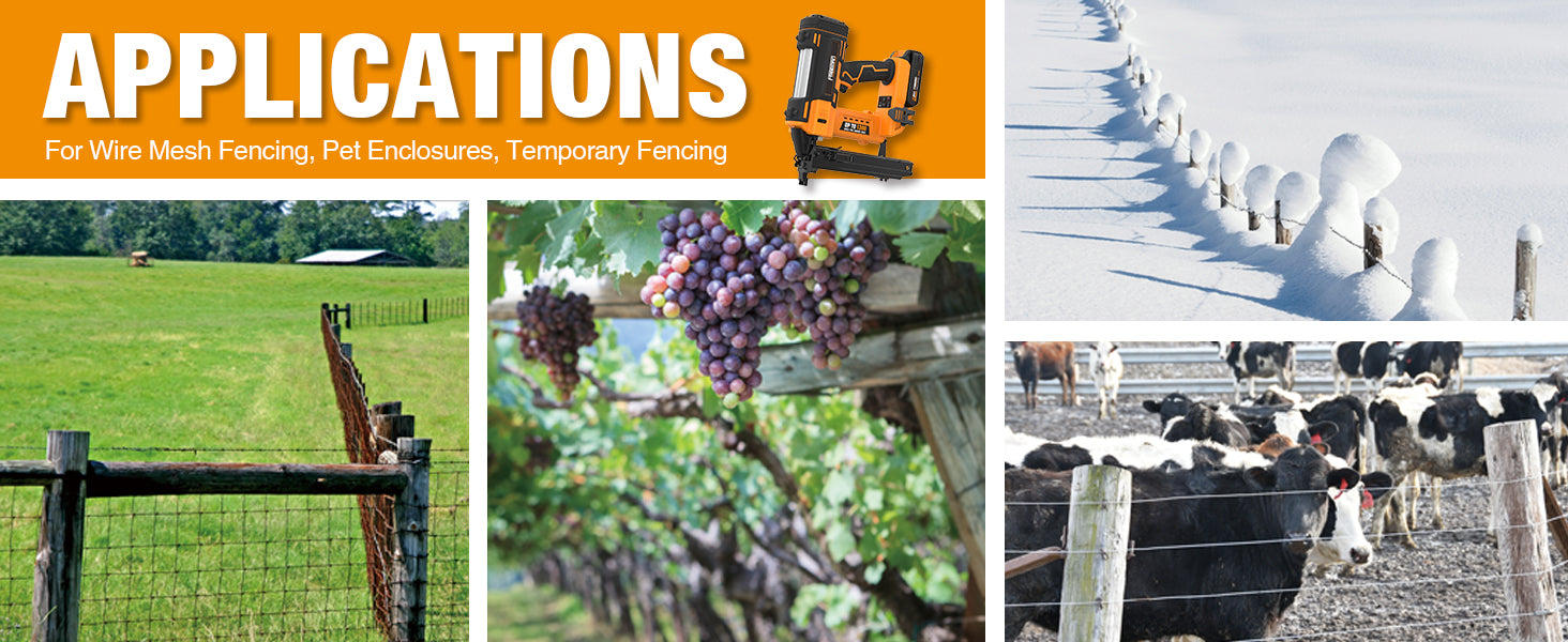The Freeman 20 Volt Cordless 16 Gauge 1" Fencing Stapler is ideal for mesh and woven applications such as electrified single wire with insulation, vineyard trellising, snow control fencing, pet enclosures, and livestock fencing.