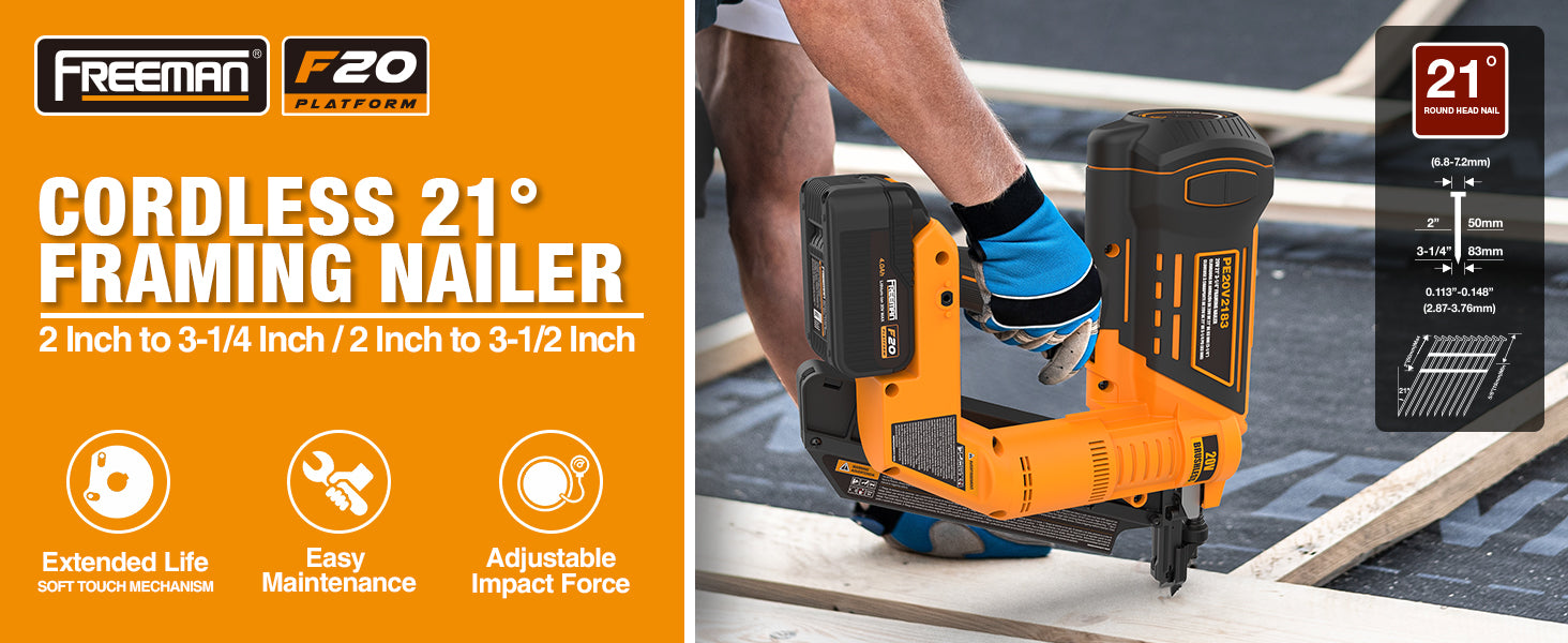 20V Cordless and Brushless 21 Degree 3-1/4" Framing Nailer