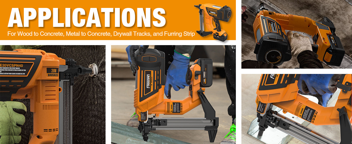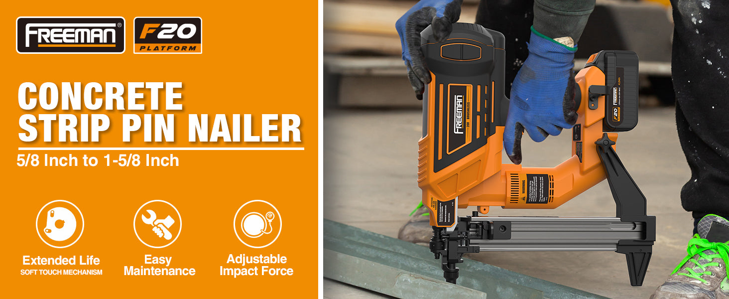20V Cordless and Brushless 1-1/2" Concrete Strip Pin Nailer