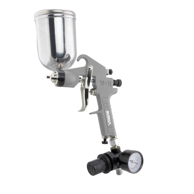 The NuMax Pneumatic 1.5 mm Tip Gravity Feed Spray Gun with 400 cc Aluminum Cup is great for projects around the home such as painting furniture and woodworking, along with automotive and industrial applications.