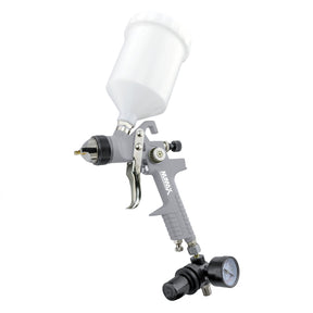 The NuMax Pneumatic 1.4 mm Tip HVLP Gravity Feed Spray Gun with 600 cc Plastic Cup is ideal for the atomization of paint. Use Use this air powered High Volume Low Pressure paint sprayer for projects around the home such as painting furniture and woodworking, along with automotive, marine and industrial applications.