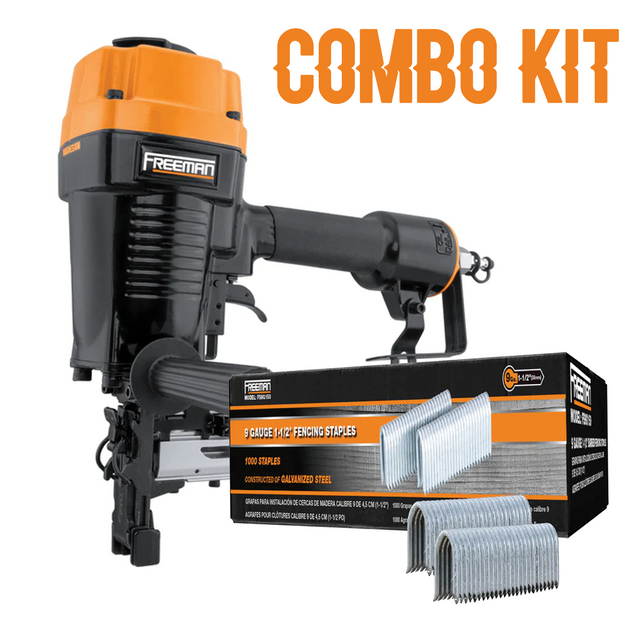 Tackle livestock, mesh, and electrified fencing projects with Freeman’s 9-Gauge power combo. This kit pairs the Pneumatic Fencing Stapler with a full 1,000-count box of 1-1/2" glue-collated staples, perfect for demanding outdoor applications.