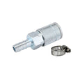 The Freeman 1/4" x 3/8" Automotive Barbed Coupler with Clamp provides a strong connection for pneumatic tools and air hoses. The 4 ball connector gives a quick and secure connection while the in-line valve keeps the nose pressurized when disconnected and reduces whip.