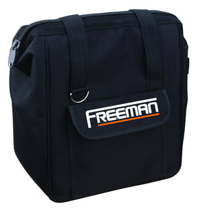 The Freeman 12" Canvas Tool Bag with Heavy Duty Zipper is ideal for securely storing and transporting a small body nailer or other small tools. Measuring 12" wide, 3" deep and 12" tall, this durable and lightweight tool bag is built to last and features a heavy duty zipper, an external pocket, and a padded handle.
